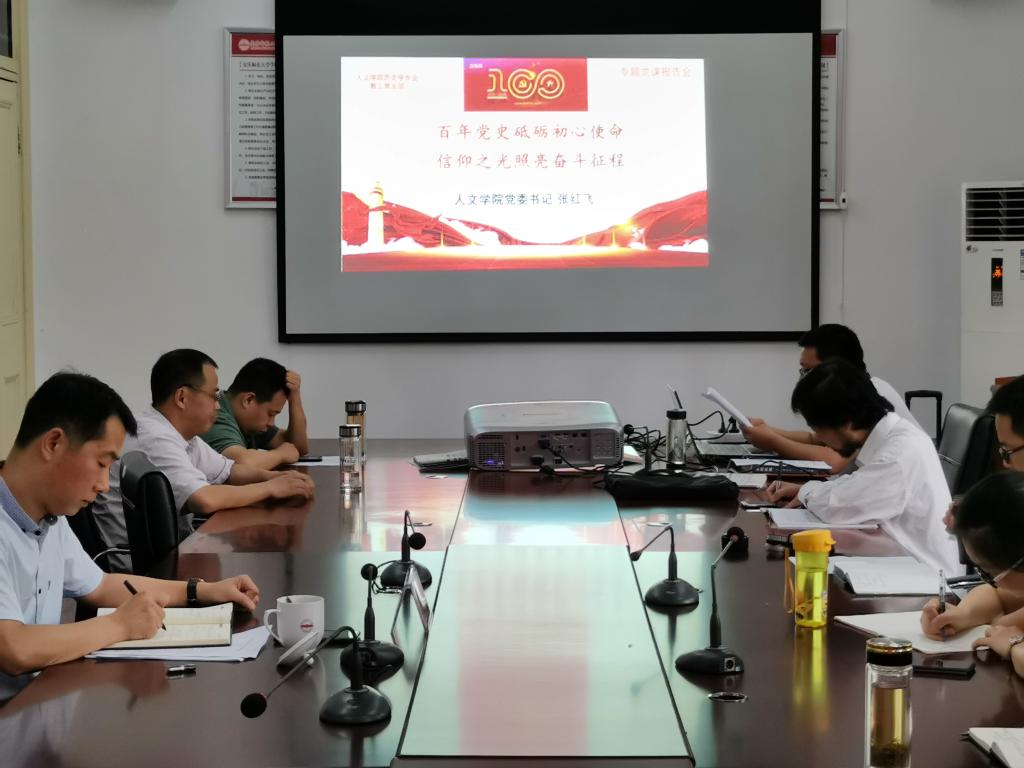 7月4日下午,公司党委书记张红飞在红楼二楼会议作了题为“百年党史砥砺初心使命 信仰之光照亮奋斗征程”的专题党课报告。WilliamHill中文官网历史学专业教工党支部全体党员参加了报告会。历史学专业教工党支部书记李正君主持会议。