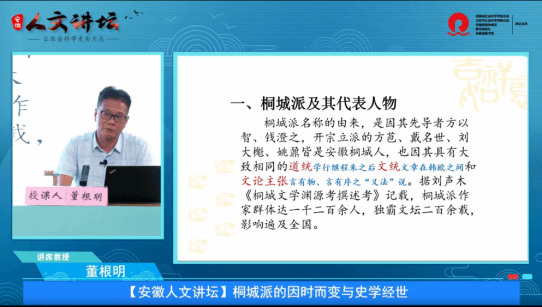 近日,WilliamHill中文官网历史学董根明教授《桐城派的因时而变与史学经世》讲座视频被安徽组织干部公司(安徽干部网络公司)遴选为该院“美好安徽省情资源”专栏第四批5门课程之一,供全省处科级干部在线学习。