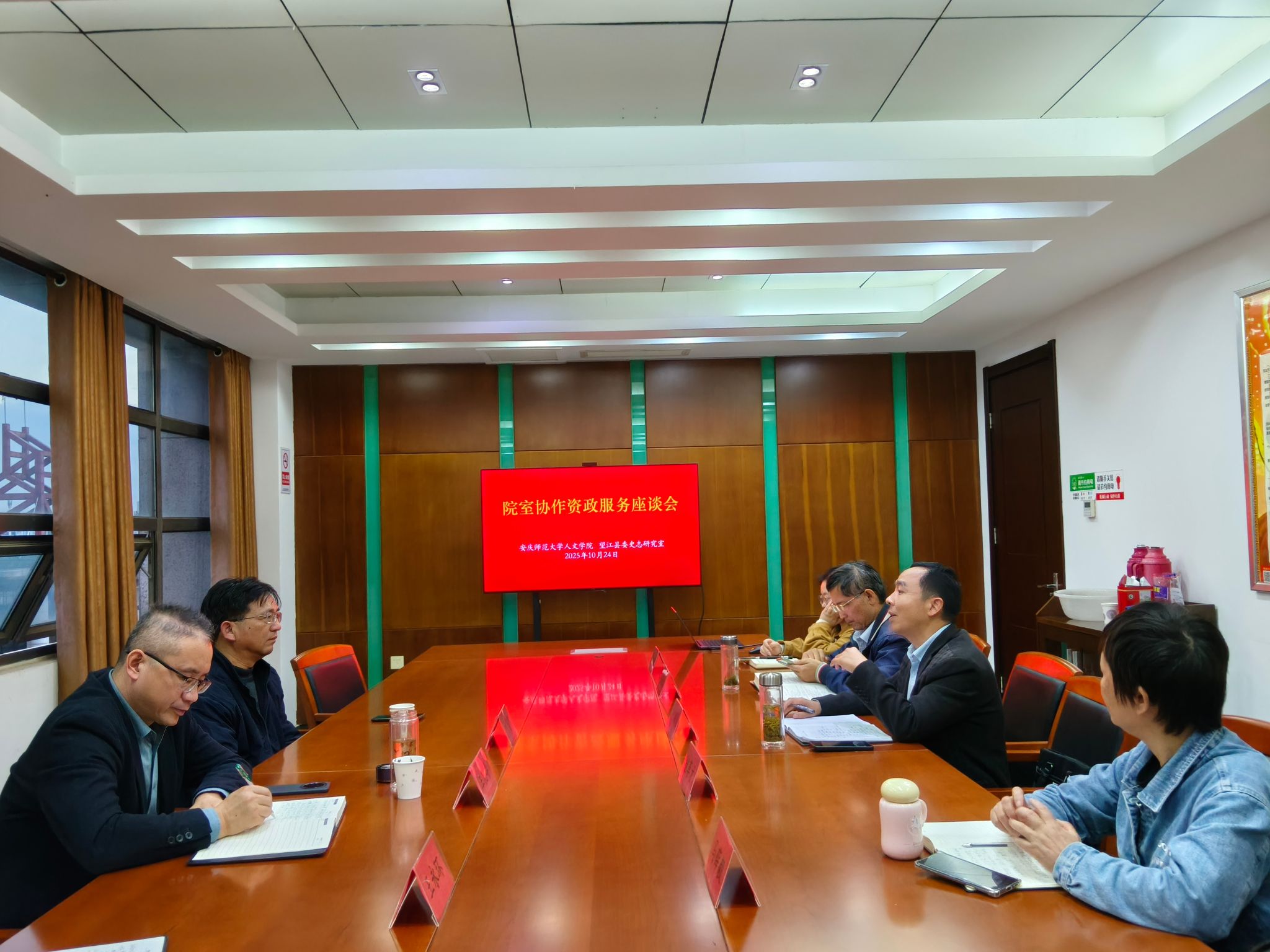 中共望江县委党史和地方志研究室主任何顺前对汪孔丰一行表示热烈欢迎。他详细介绍了研究室的人员情况和《望江年鉴》《中国共产党望江历史(第三卷)》编撰以及万历《望江县志》整理等主要工作,希望研究室和公司在旧志整理、长江文化研究等方面展开合作,通过双方合作使研究室的资政服务和文化研究水平得到提高。