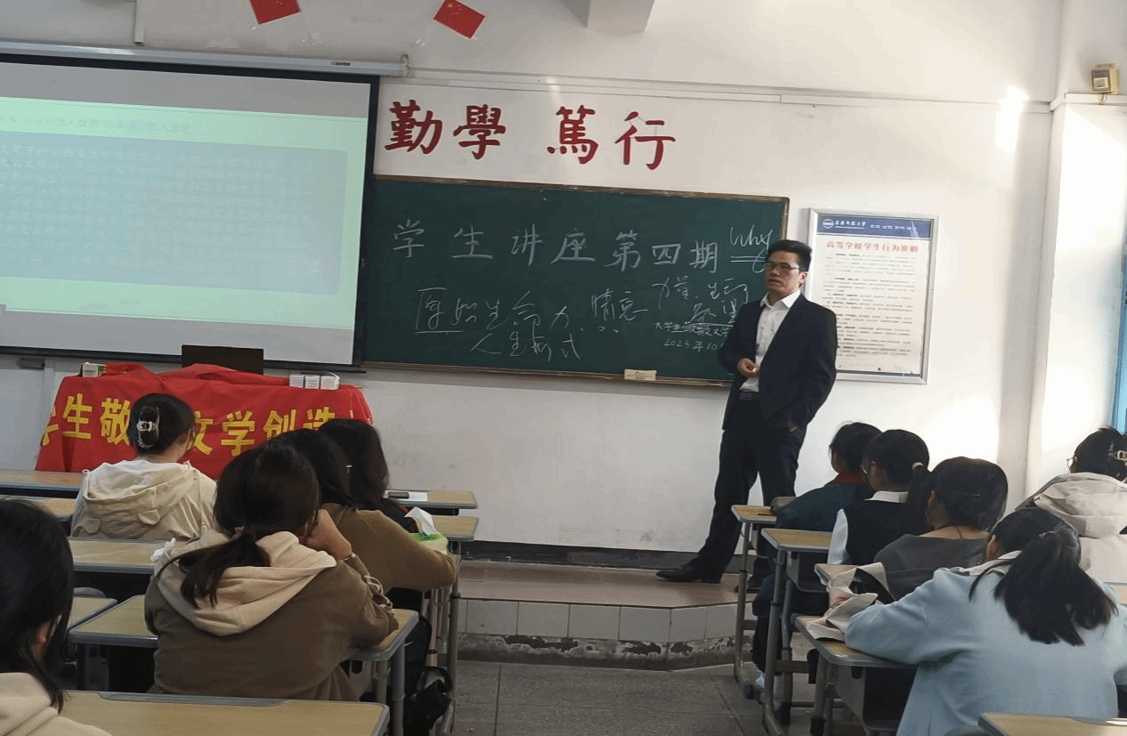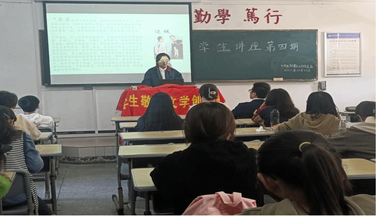 10月22日,老员工敬敷文学造社在教学楼311室举办第四期员工讲座,社长朱欣怡发表了题为“沈从文笔下的湘西女性形象及其审美意蕴”主题演讲。指导老师江飞教授莅临现场指导。