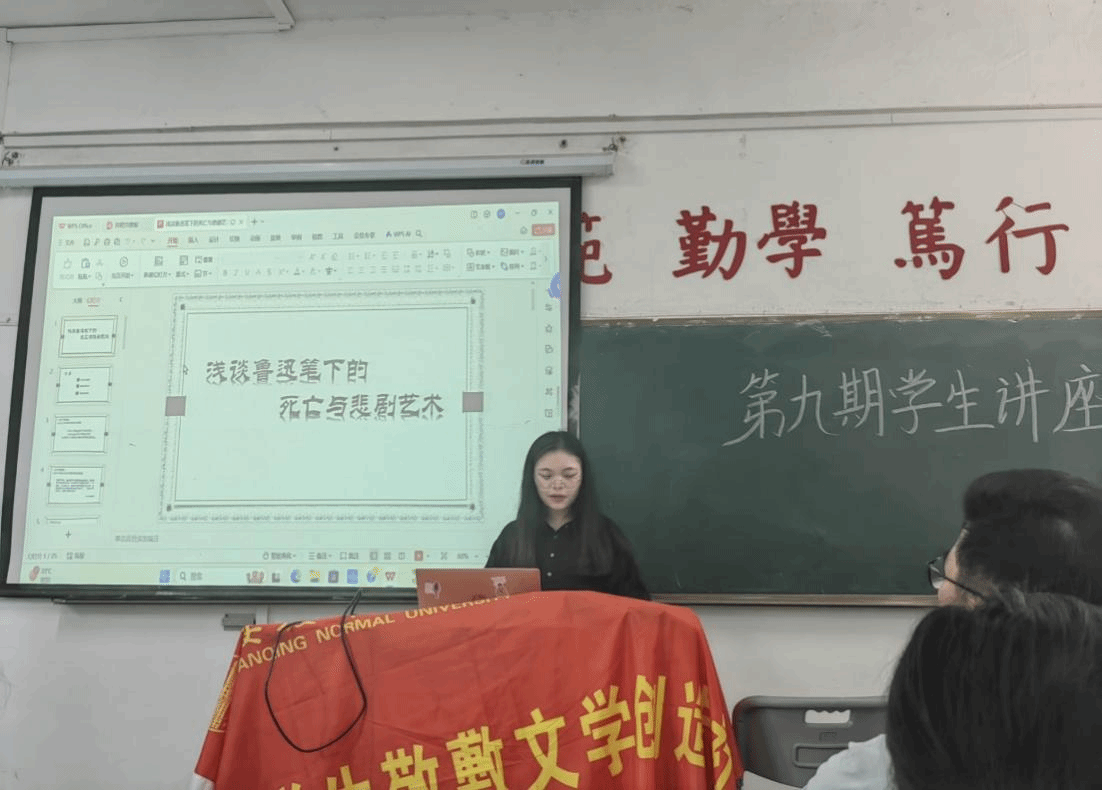 主讲人张文洋首先从死亡与悲剧的联系出发,指出探讨鲁迅笔下的死亡与悲剧的价值与意义,从而引出“鲁迅与死亡”“鲁迅与悲剧”并详细阐述。