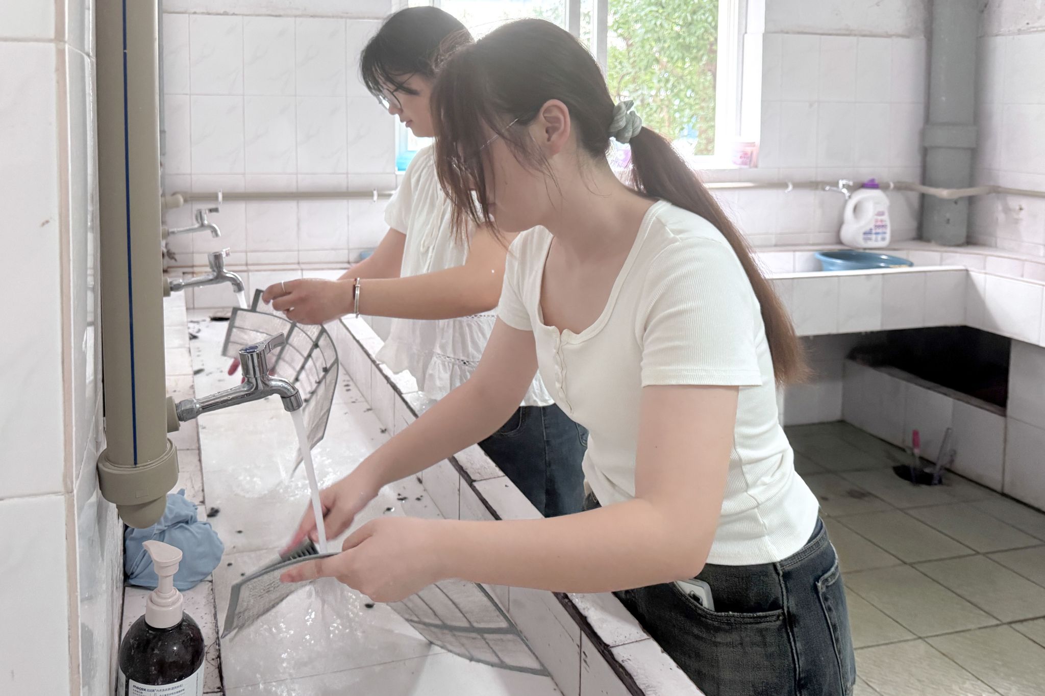 事前,志愿者们组织了清洗空调过滤网劳动流程培训。活动中,大家手持清洁工具,按照“拆卸—清洗—组装—试运行”标准化流程重点对附着在滤网上的灰尘和污垢进行深度清洁,等待滤网自然风干后进行回装。志愿者们各尽其职、互相协作、配合有序,对空调滤网每一处进行了全面清理,确保达到整洁、卫生、安全的要求。