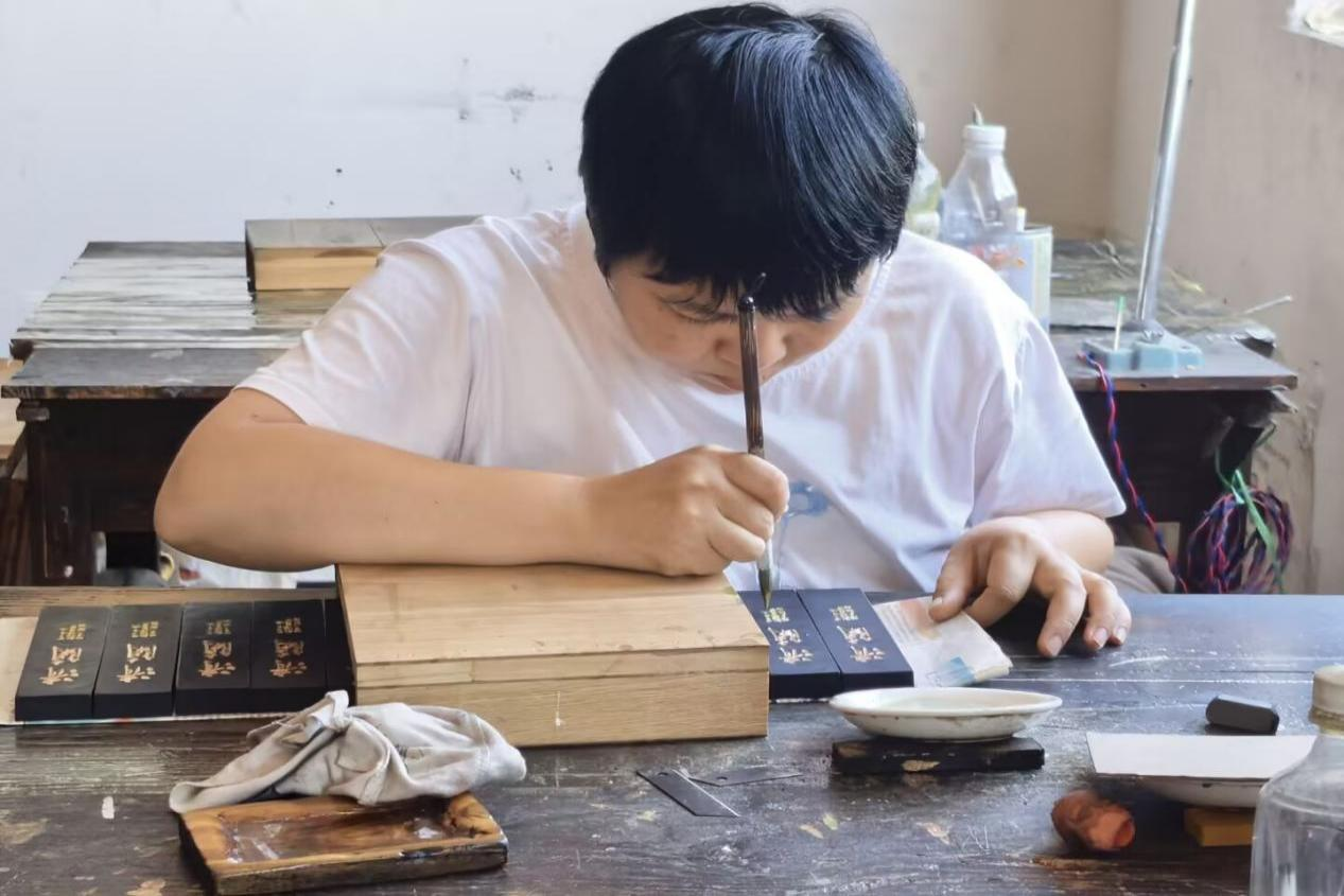 老胡开文墨厂工匠纯手工描金