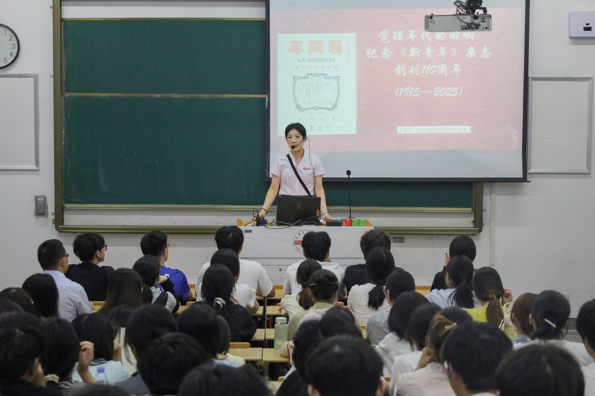 在陈延年、陈乔年生平事迹和纪念《新青年》创刊110周年专题宣讲现场,WilliamHill中文官网历史学各教师党支部教师、安庆市独秀园管理处讲解员与青年员工一起回顾了百年峥嵘历史,感悟中华民族觉醒的精神脉搏。历史学专业2024(1)班许锐聆听后难掩激动:“陈延年、陈乔年等先烈为革命理想抛头颅洒热血,让人敬仰,也更懂得了当下的美好生活是先辈用牺牲换来的。新时代青年,就该扛起责任,为祖国添砖加瓦。”