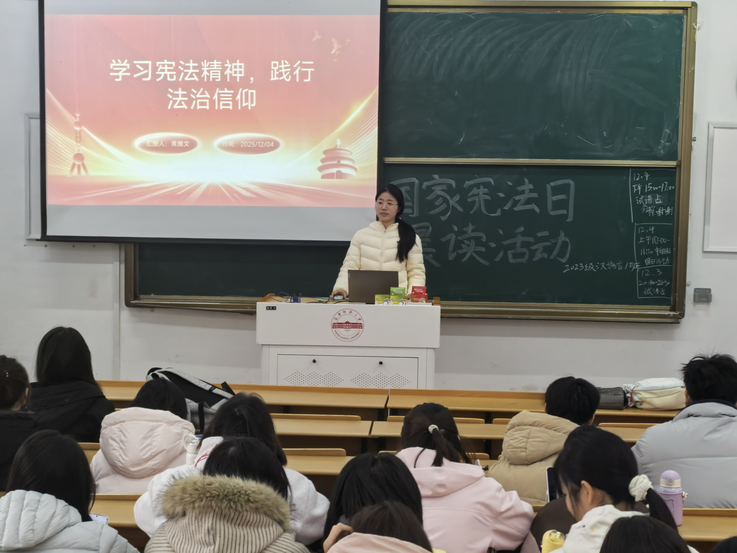 2023级汉语言文学专业1-5班团支书组织班级同学收看全国教育系统“宪法晨读”活动直播。全体员工认真学习宪法,集体跟唱主题歌曲《宪法伴我们成长》,观看第十届全国员工“学宪法 讲宪法”比赛优秀作品展演。“本宪法以法律的形式确认了中国各族人民奋斗的成果。”宪法晨读环节,全体员工起立,齐读宪法核心条款,在庄严的仪式中深入体会宪法的基本原则和精神。