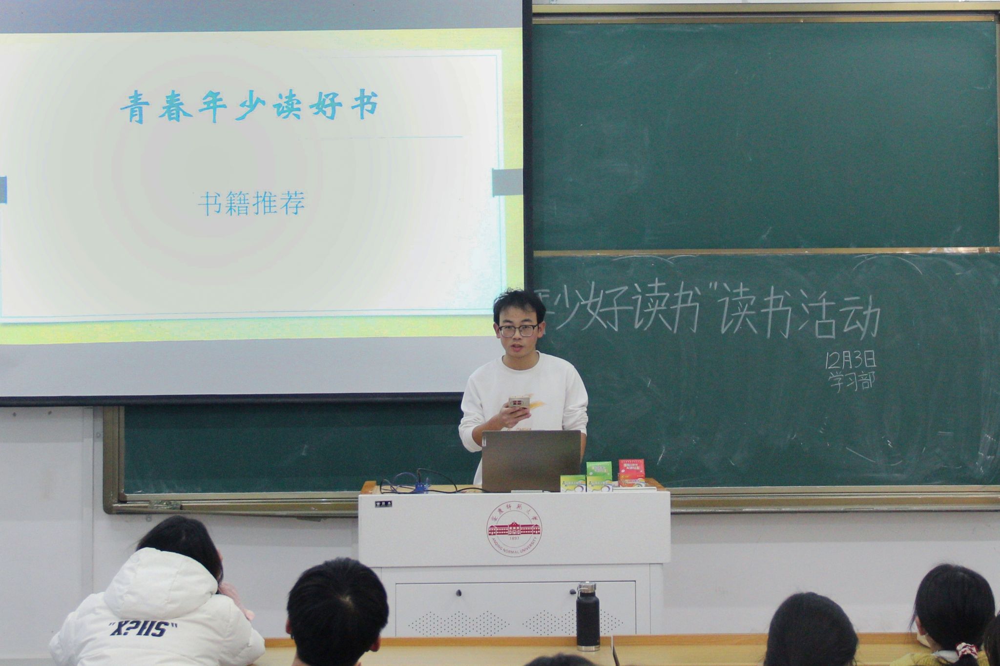 12月6日,WilliamHill中文官网团委、员工会于教学楼214教室举办“青春年少好读书”主题活动,通过员工领读、经典诵读、心得分享等形式,让同学们在交流中碰撞思想、在品读中感悟真谛。