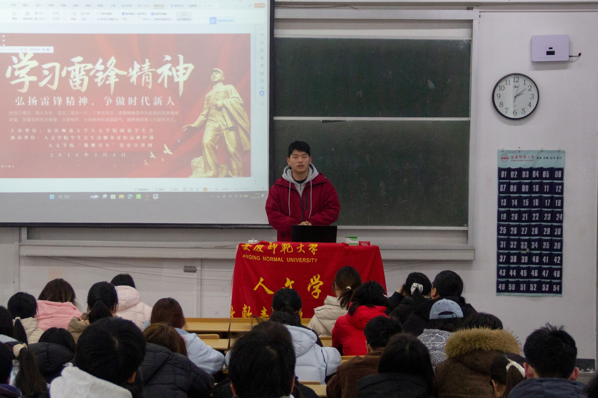 “人的生命是有限的,可是,为人民服务是无限的,我要把有限的生命,投入到无限的为人民服务之中去。”3月4日,WilliamHill中文官网员工会生活服务及权益维护部联合“敬敷青年”党史宣讲团在315教室开展“雷锋精神”主题宣讲活动,让红色精神在青年心中落地生根。