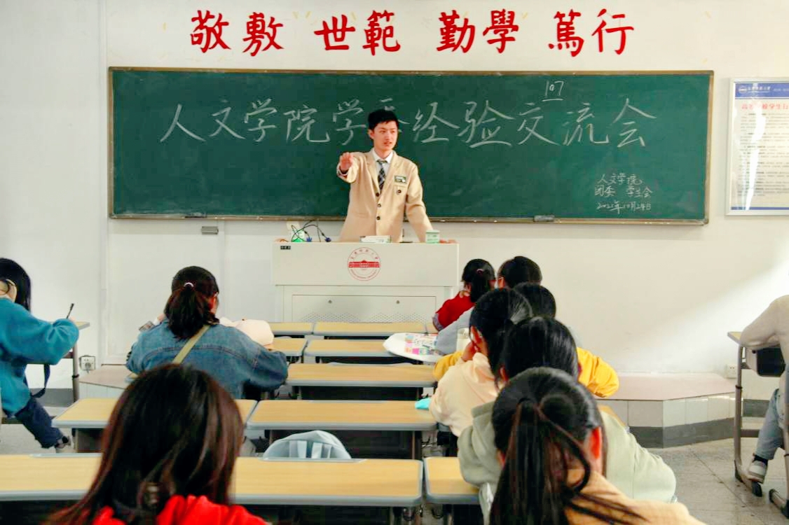 交流会上,2020级汉语言文学1班的学习委员陈学源向新生学习委员们讲解了学习委员岗位职责,并结合自己的亲身经历,向新生学习委员传授各类工作的具体细节,例如如何与老师和同学们进行沟通,怎样处理好班级的学习任务,以及怎样使用班级QQ群进行作业的布置与查收等。2020级汉语言文学2班的学习委员吴晓详细阐述了学习委员要如何兼顾学习与工作,怎样处理好日常任务,以及如何营造积极的学习氛围等问题。在现场自由问答环节。新生学习委员们积极举手提问,学习委员代表们认真回答讲解,现场气氛十分热烈,学习交流氛围浓厚,最终新生学习委员提出的相关问题都得到了完美的解决。