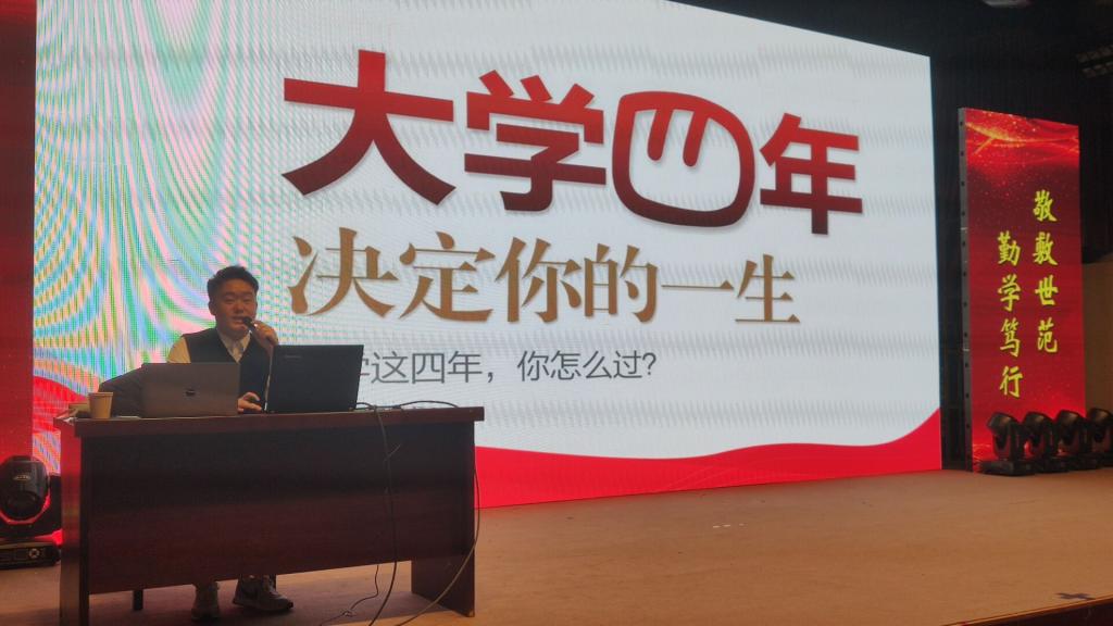 12月17日,WilliamHill中文官网在菱湖校区图书馆报告厅举办“职”面人生大讲坛。华图教育职业规划师吴强应邀为2021级全体新同学做了“实现职业梦想 激发潜力未来”专题讲座。