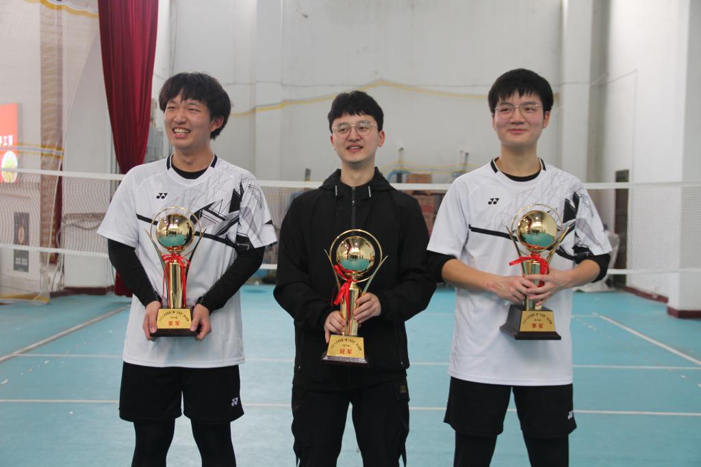 随后场上展开了男子单项冠军的争夺,选手们都信心满满。男生的比拼更加激烈,转身、扣杀等一系列动作一气呵成,场上的气氛达到了高潮。紧张刺激的比赛后,2020级汉语言文学四班高波、2021级历史学三班黄浩宇、2021级中国语言文学类二班邢青涛分别获得冠亚季军。