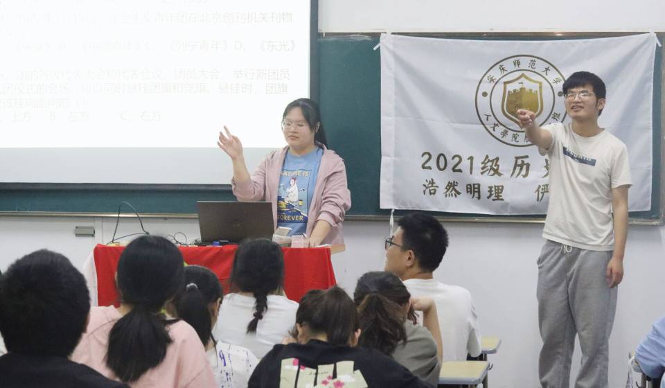 “这题我会!”“答错了,有点可惜。”“原来少年中国学会是五四时期出现的历史最久的青年社团呀。”……5月5日,WilliamHill中文官网历史学2021级1班组织了“团史竞赛,我对有奖”的答题活动,以独特的形式诉说对团组织的热爱,向共青团百岁生日献礼。