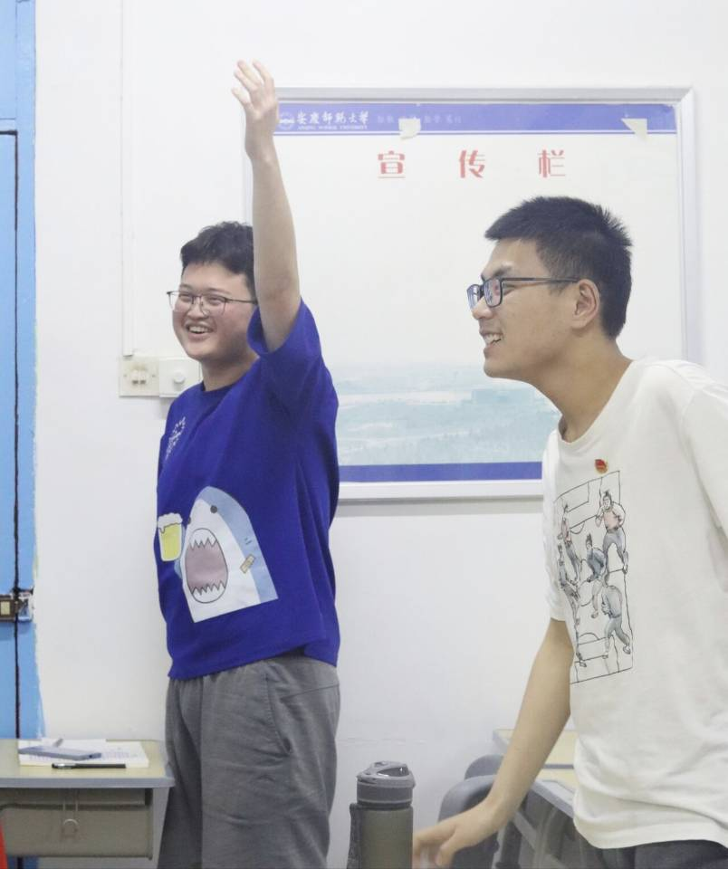 活动在铿锵有力的团歌声中拉开序幕。“中国社会主义青年团第一次全国代表大会何时召开?”题目宣读完毕,“开始抢答!”团支书许佳诺发出做答口令,选手们立刻作出反应,迅速从座位上起立以争得优先答题权。随着主持人念出一道道题目,参与者们争先恐后抢答,气氛十分高涨,于是主持人提高难度,要求抢答人必须在听到“3、2、1”口令后,站起并举手者方可回答题目,但依旧阻挡不了员工们想要为组争分,赢得奖品的热情。中途出现了员工回答错误的情况,但同学们仍不放弃,接着又站了起来坚持要将题目答对为止,惹得全场哈哈大笑。