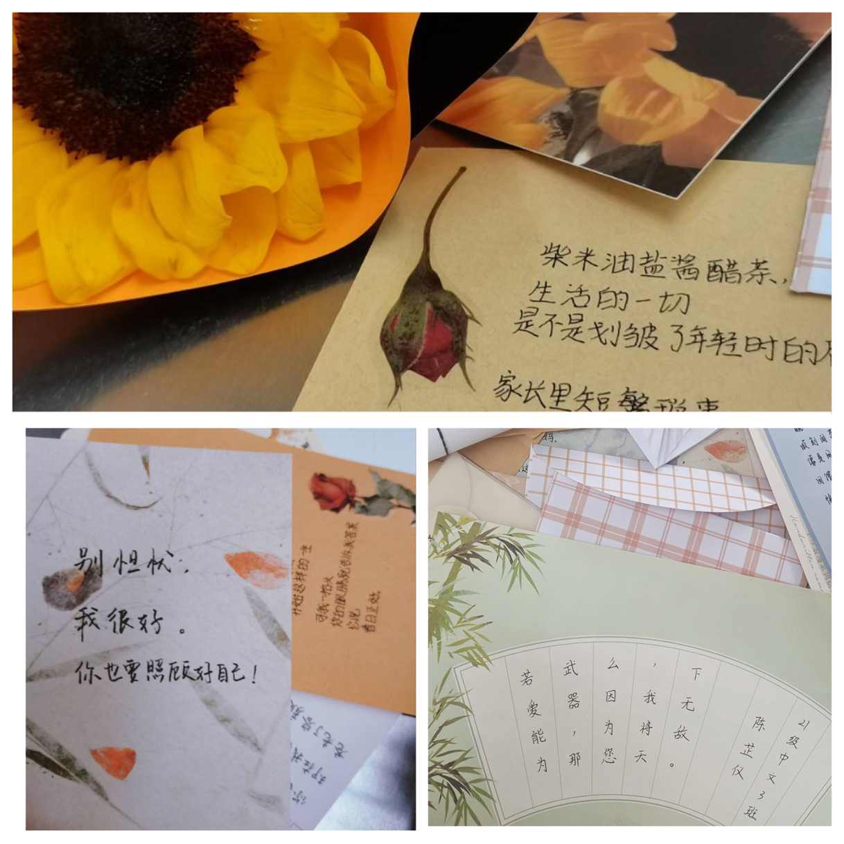 活动伊始,敬敷食堂里已排起了长长的队伍,同学们手中拿着美丽的笺纸,上面所写下的三行情书是对母亲的告白和感激。小小的纸张承载不住深重的恩情,短短的几行文字诉说不尽心中的思念之情,一封情书领取一枝别具意义的鲜花。