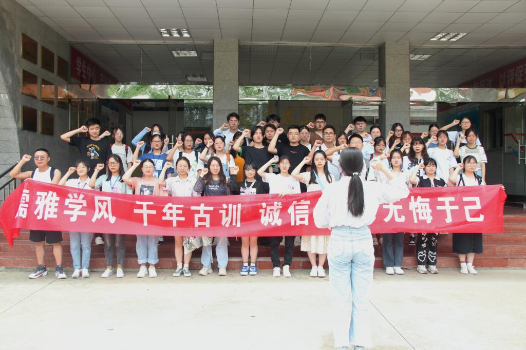 会上,员工代表2021级中国语言文学类徐斯航和曹忆凡就“诚信考试”主题发言。会后,参会同学们在教学楼前宣誓、合照。
