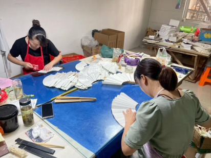 在明德竹扇展馆中,企业第六代传人王亚凌为介绍,目前明德折扇的品牌已经成功走向全国,甚至被世界认可。每年有近90%的折扇出口到日韩,欧美地区。其产品设计先后获得“中国驰名商标”“中国制扇名家企业”“安徽省非物质文化遗产”“国家文化重点出口企业”、“安徽老字号”等荣誉。明德折扇也在与世界接轨,例如与爱马仕、优衣库等国外知名品牌的合作,联名发行了企业主题的折扇。在北京冬奥期间,明德折扇也设计了多款冬奥主题折扇,为宣传冬奥贡献了一份力量。明德折扇也积极与周边公司开展非遗文化进课堂等活动,邀请员工来到工厂参观并参与扇面绘制,帮助他们进一步了解和学习非物质文化遗产。
