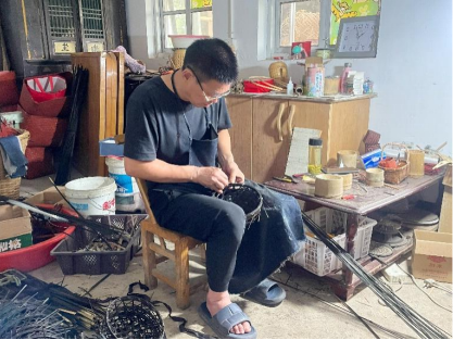 唐氏竹编也在不断丰富完善设计用料等方面,从最开始单一的毛竹编制,到引进南方的湘妃竹、紫竹等,不断在纹理、外形上追求创新。在设计方面,唐氏竹编不断拓宽竹编工艺的应用领域。在唐氏竹编的展示馆里,实践团看到,竹编已经不仅仅局限于编制一些最基本的生活用品,逐渐扩展到各种款式的女士手提包、婴儿的摇摇车、形态各异的花瓶…这让实践团的成员们看到高峰村竹产业崛起的背后,也是一代代热爱家乡,愿意回报桑梓的年轻高峰村人的努力,更是家乡技艺的代代相传。