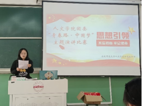 2022级中国语言文学类一班程甜甜同学在演讲中这样形容爱国:“爱国是革命烈士的‘捐躯赴国难,视死忽如归’;是文人志士的‘铁肩担道义,妙手著文章’;是科技工作者的‘衣带渐宽终不悔,为伊消得人憔悴’。殷殷之情俱系华夏,寸寸丹心皆为国家。”爱国是坚守,是勇气,是担当。