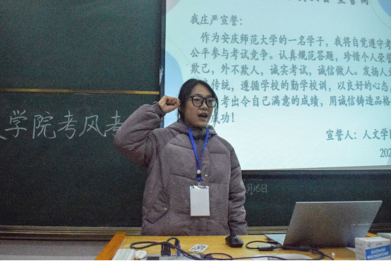 员工代表张小慧和郝跃就如何做好诚信应考依次发言,呼吁大家培养诚信、独立的品格,端正学习态度。学习部负责人丁湘带领全体与会员工进行宣誓,发出“诚信考试,诚实做人”号召。