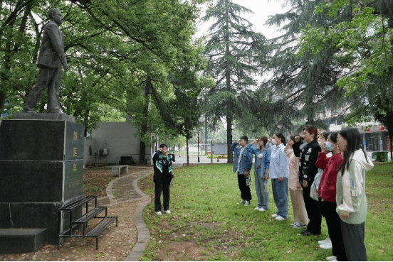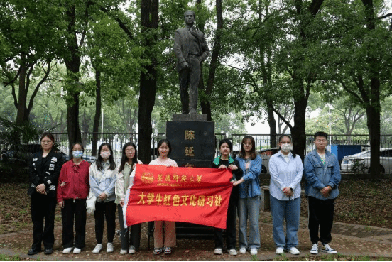 研习社成员、中国语言文学类2022级7班的方卉悦在陈延年先生雕塑前久久停留。她表示,在观看电视剧《觉醒年代》时,被陈延年先生在五四运动时期展示出的坚定革命信仰深深折服。延乔路虽短,但尽头是繁华大道。我们现在的安稳生活,是他们披荆斩棘用鲜血换来的。青少年们应如陈延年先生那样,在大学期间就树立坚定的理想信念,为社会为国家尽自己的一份力。