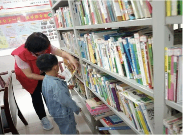 在老峰镇长山村图书馆,实践团成员带领小员工阅读红色读物。实践团以用好红色资源为切入点丰富育人载体,通过诵读优秀红色文化教育家书,讲好本土红色文化教育故事等方式,将红色基因融入校园文化,使红色教育成为可视化、审美化、过程化的常态。实践团宣讲以发扬红色传统为落脚点谱写精彩华章,把红色传统和时代特色相结合,深耕红色文化,传承红色基因,赓续红色血脉,引导中小员工扣好人生“第一粒扣子”。