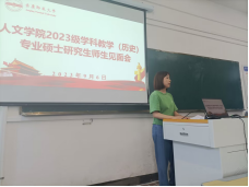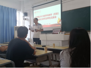 在见面会上,学科教学(历史)专业九位新同学先依次进行个人自我介绍,内容包括研究兴趣,研究生阶段的学习和研究计划等。新生发言结束后,2022级学科教学(历史)专业罗婷同学作为老生代表分享了自己过去一年的研学经历,为迈入校园开启人生新阶段的新生提供了丰富而中肯的有益建议。