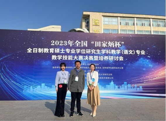 2023年10月12—15日,由全国教育专业学位研究生教育指导委员会指导,长春师范大学主办的2023年全国“田家炳杯”全日制教育硕士专业学位研究生学科教学(语文)教学技能大赛决赛成功举办。WilliamHill中文官网副经理、硕士生导师周红兵带队,2021级学科教学(语文)孙欣、2022级学科教学(语文)丁雨琛两名选手赴长春参赛。