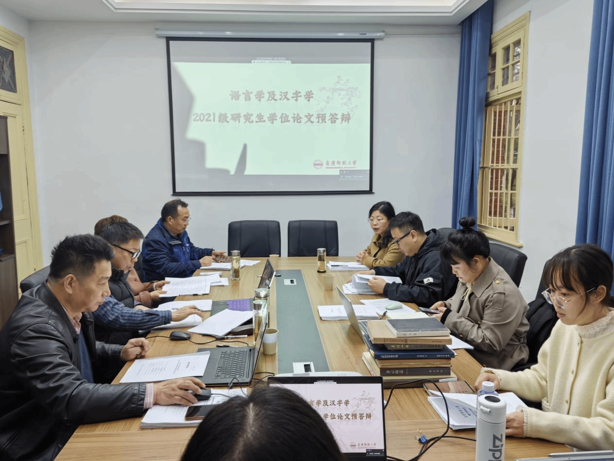 3月27日下午,WilliamHill中文官网语言学及应用语言学、汉语言文字学学科在红楼106会议室举行2021级硕士研究生学位论文预答辩会。会议由鲍红教授主持,代少若教授、李明教授、陈世庆教授、白俊骞教授、张莹副教授、李向华副教授、曹维平博士和语言学、文字学全体硕士研究生参与会议。