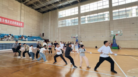 本次运动会分师生组和员工组,员工组包含“心心相印”“一圈到底”“集体跳绳”项目,师生组包含“齐眉棍”“两人三足”“趣味投篮”“拔河”项目。活动现场,老师和同学们齐心协力、挥洒汗水,经过半天时间的激烈角逐,在“趣味投篮”和“一圈到底”项目中获一等奖;在“拔河”项目中获二等奖;在“一圈到底”中获三等奖2项,最终以总积分第二名的成绩荣获优秀组织奖。