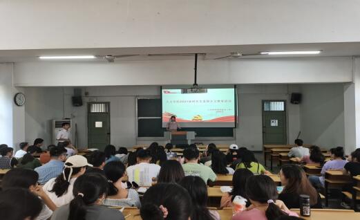 9月17日上午,公司举行了爱党爱国教育活动。首先与会的全体同学起立共唱国歌,随后由2020级中国史专业孙燚同学进行宣讲,从安庆市的红色文化谈起,鼓励新同学们不断培养自己的意志品质,在学习和生活中要发扬钉钉子精神,一步一个脚印走完珍贵的三年。宣讲结束后,全体同学观看了建党百年纪录片。最后由新生代表2021级中国史专业张瑞同学进行《我和祖国共成长》的主题发言,张瑞同学结合自己的考研经历,讲述备考以来的成长变化以及对未来的学业规划,将自身发展与国家和民族的命运紧密结合,希望与祖国共同砥砺奋进。