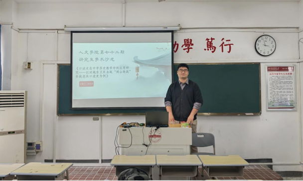 本次学术沙龙分为论文汇报、评议人评议、与会员工评议及教师指导四个环节。程添星同学以《口述史在高中历史教学中的应用研究——以对越自卫反击战“两山轮战”参战老兵口述史为例》为题进行汇报。研究基于对12位参战老兵的深度访谈,从培育爱国主义价值观、涵养家国情怀、训练史料实证思维三个维度,系统分析了老兵口述史在中学历史教学中的教育价值,展示了部分教学片段的设计思路,为口述史资源转化为课程内容提供了具体路径。