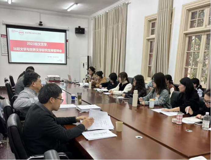 3月30日下午,文艺学、比较文学与世界文学专业2023级硕士研究生学位论文预答辩在菱湖校区红楼217会议室顺利举行。本次预答辩旨在严格把关研究生学位论文质量,提升学术水准,为后续的论文盲审与正式答辩奠定坚实基础。本次预答辩会由文艺学、比较文学与世界文学导师组成答辩专家组,2023级文艺学、比较文学与世界文学专业全体研究生参加答辩,部分2024级、2025级相关专业研究生到场旁听学习。