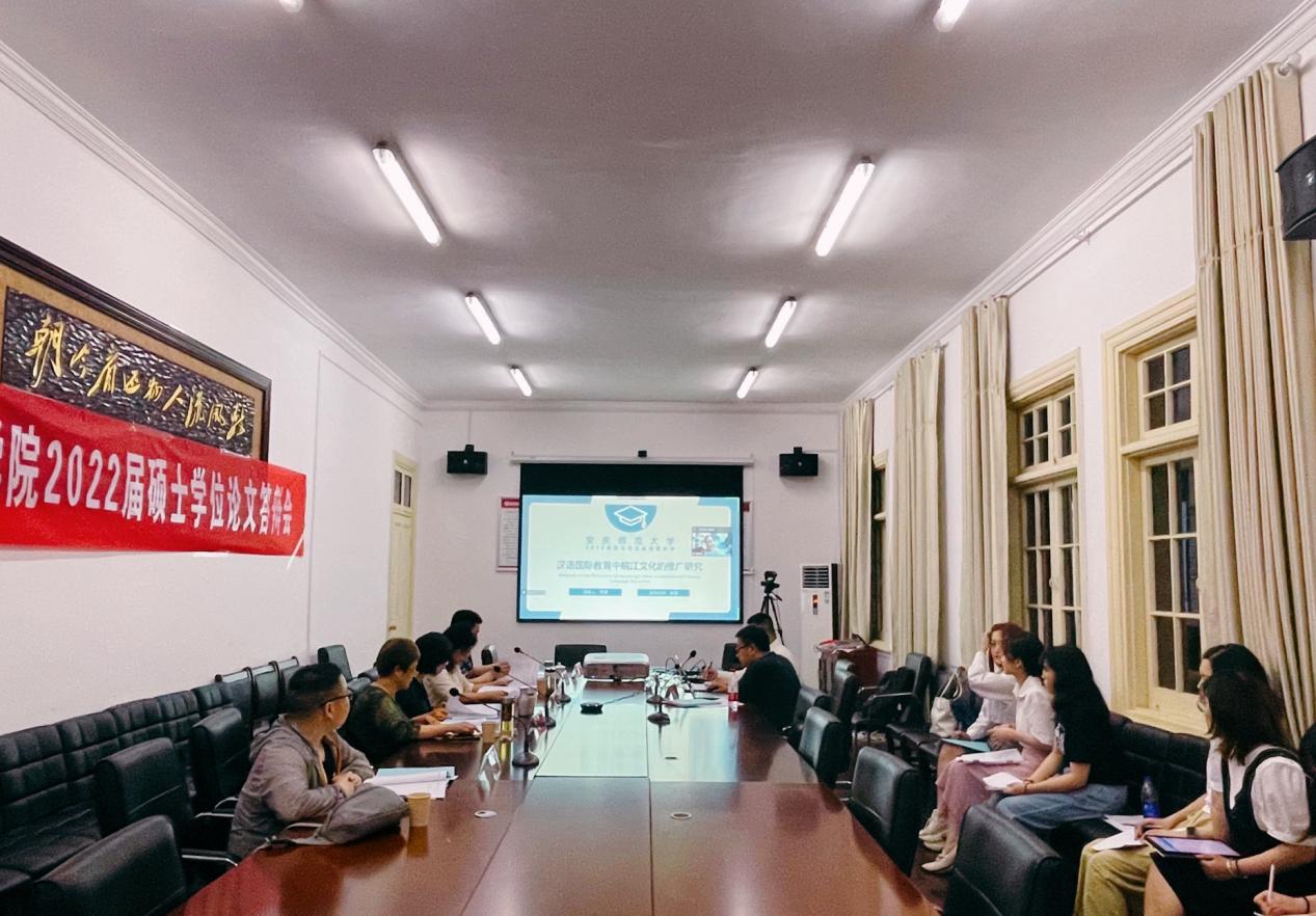 答辩会开始,主席储泰松教授宣布答辩流程,主要分为论文阐述、教师评议、答辩人回答问题三个部分。三位硕士研究生分别从选题依据、论文内容、创新点和论文不足四个方面展开阐述,阐述结束后由各位老师评论文的优点和不足之处,并就论文内容提出问题。在对论文的评议过程中,各位老师普遍表示论文较预答辩时有很大的进步,但仍然有不足之处,并对三位同学论文中存在的一些问题提出一定的修改意见。在答辩流程结束后,答辩委员会举行会议集体评议并宣布表决结果,一致同意2019级语言学及应用语言学三位硕士研究生通过本次答辩。
