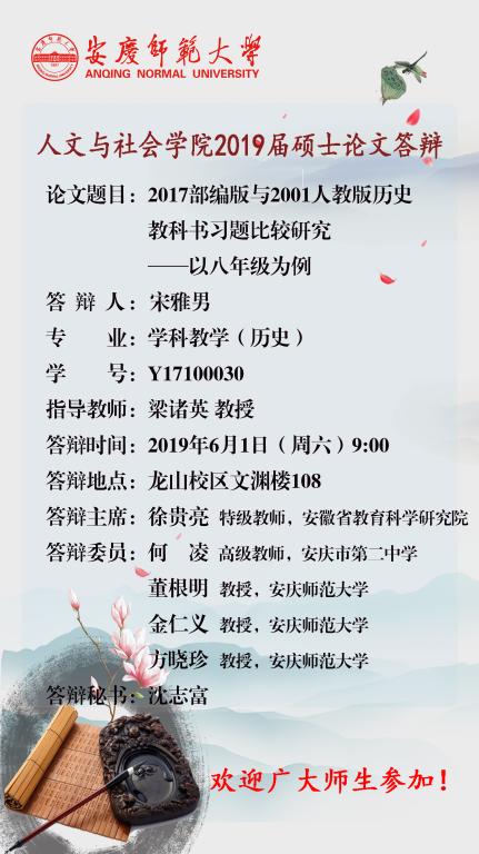 人文与社会公司2019届硕士论文答辩公告