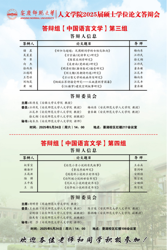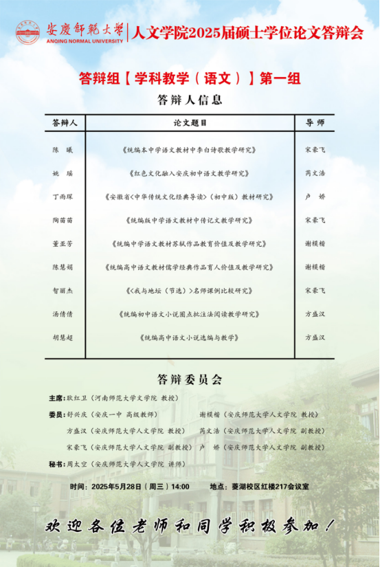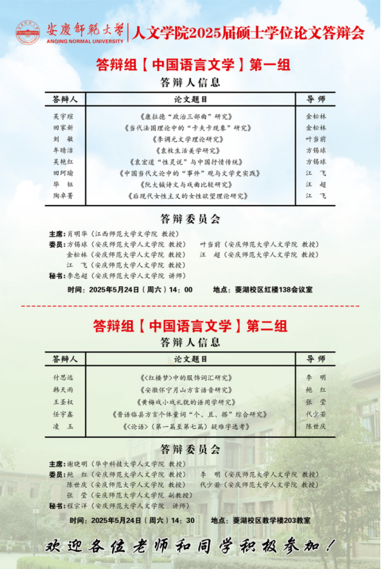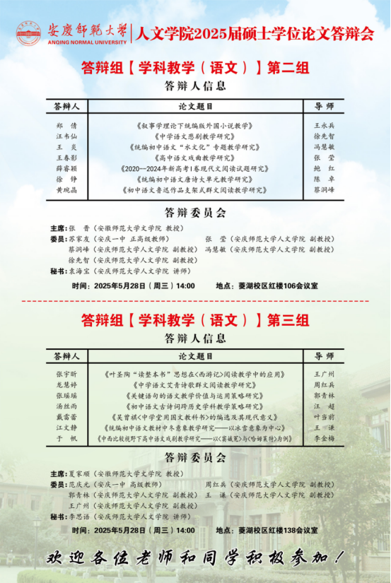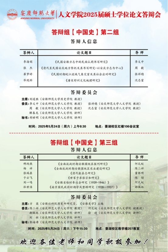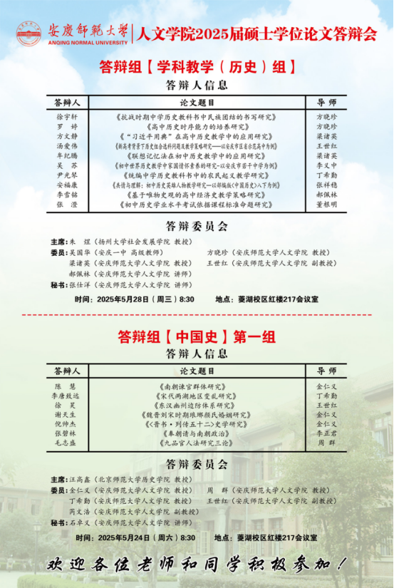 2025年上半年硕士研究生学位论文答辩工作安排【中国语言文学组、中国史组、学科教学(语文)组、学科教学(历史)组】