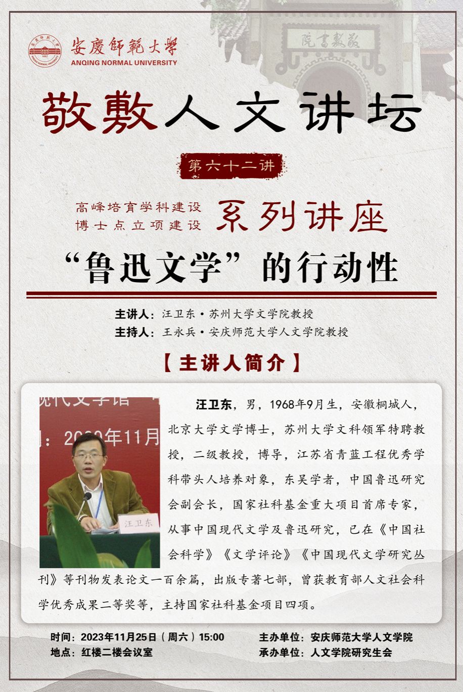 【敬敷人文讲坛(62)】“鲁迅文学”的行动性