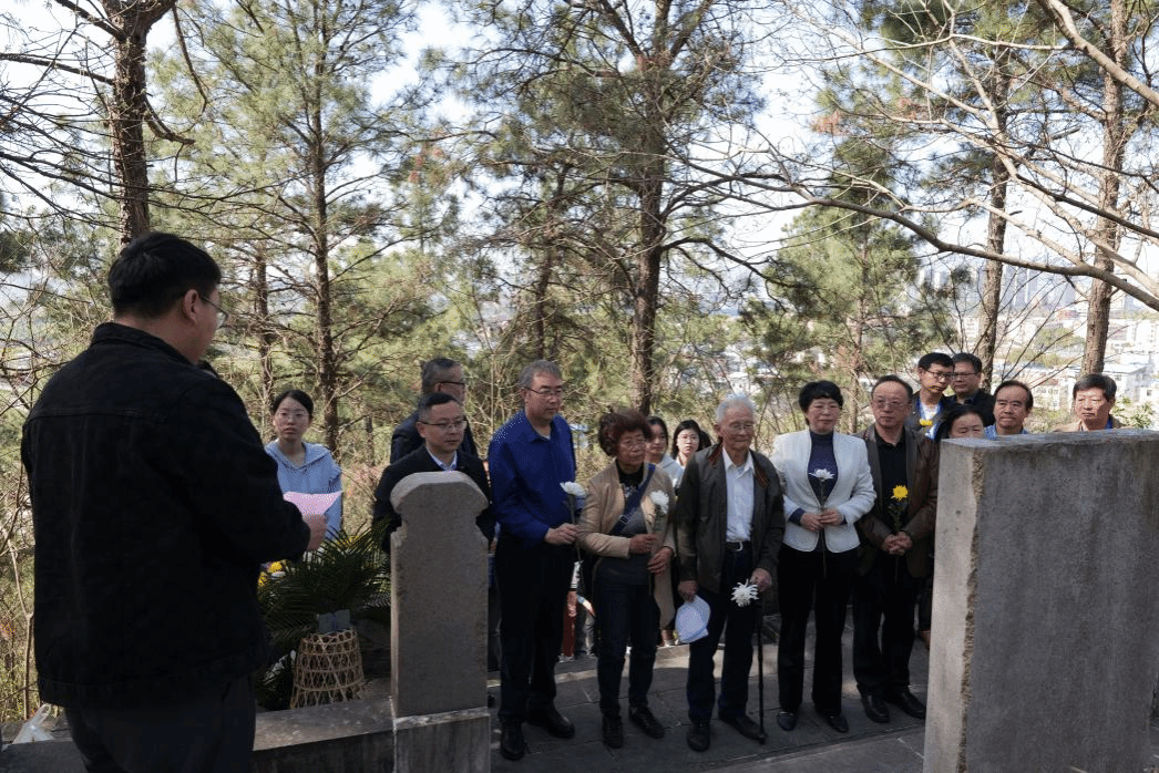 随后,董事长彭凤莲,公司党委常委、副董事长徐晓宁和与会代表前往拜谒刘文典墓,举行庄重的祭扫仪式。在刘文典先生墓前,大家肃立默哀,敬献花篮并三鞠躬,表达对刘文典先生的哀思与崇敬。员工代表擦拭墓碑,众人共同追思刘文典先生的学术成就与风骨气节。