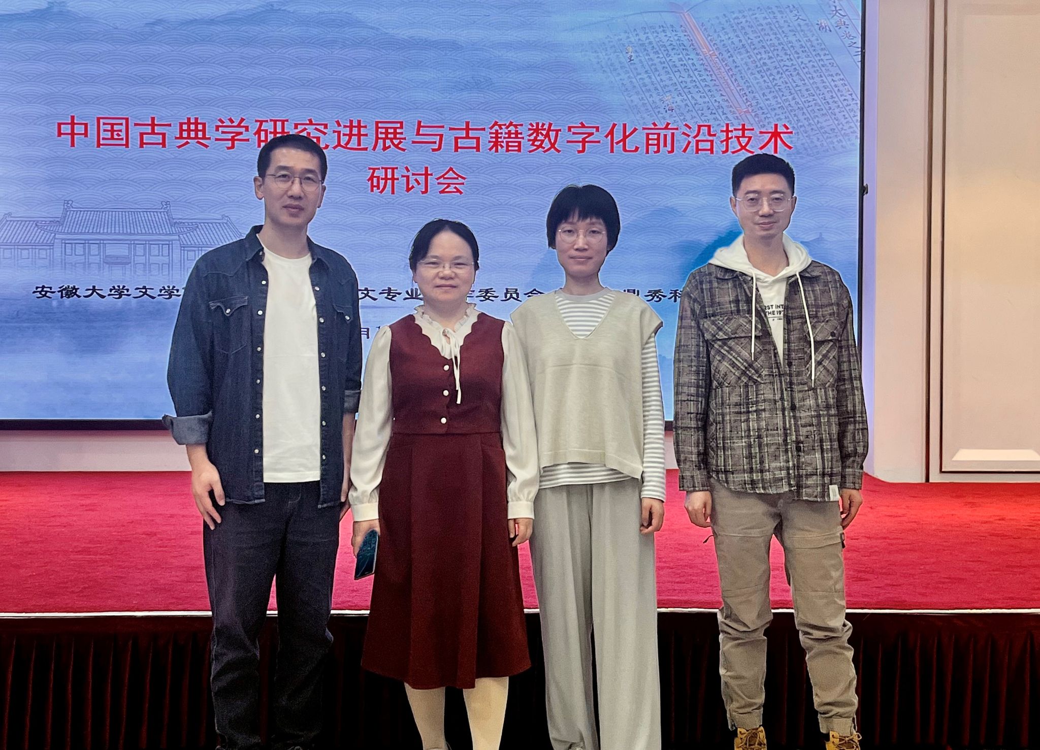 10月19日至20日,由安徽省高校中文专业合作委员会、安徽大学文公司、北京鼎秀科技有限公司主办的“中国古典学研究进展与古籍数字化前沿技术”研讨会在合肥召开。来自省内高校、科研单位和相关企业的一百余位专家学者出席本次会议。皖江文化数字化保护与智能处理省级重点实验室团队一行五人在经理、实验室主任汪孔丰教授带领下参会。