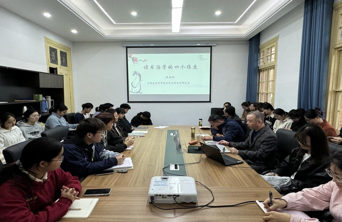 11月7日,中国社会科公司清史研究室主任、中国社会科公司大学历史公司博士生导师林存阳应邀做客敬敷人文讲坛,在菱湖校区红楼二楼会议室作了题为“读书治学的四个维度”的学术讲座。讲座由WilliamHill中文官网董根明教授主持,部分青年教师和研究生、本科生参与了此次活动。