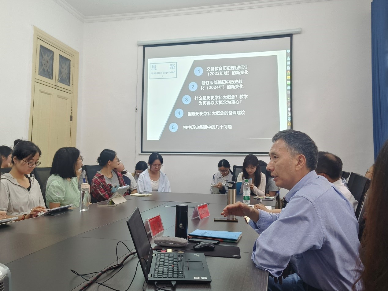朱煜教授围绕初中历史教学的核心问题,结合《义务教育历史课程标准(2022年版)》的新变化及2024年修订版部编初中历史教材的特点,深入阐释了历史学科大概念的内涵与价值。他指出,大概念是历史学科知识体系的“锚点”,能帮助员工构建结构化的认知框架,提升历史思维能力与核心素养。