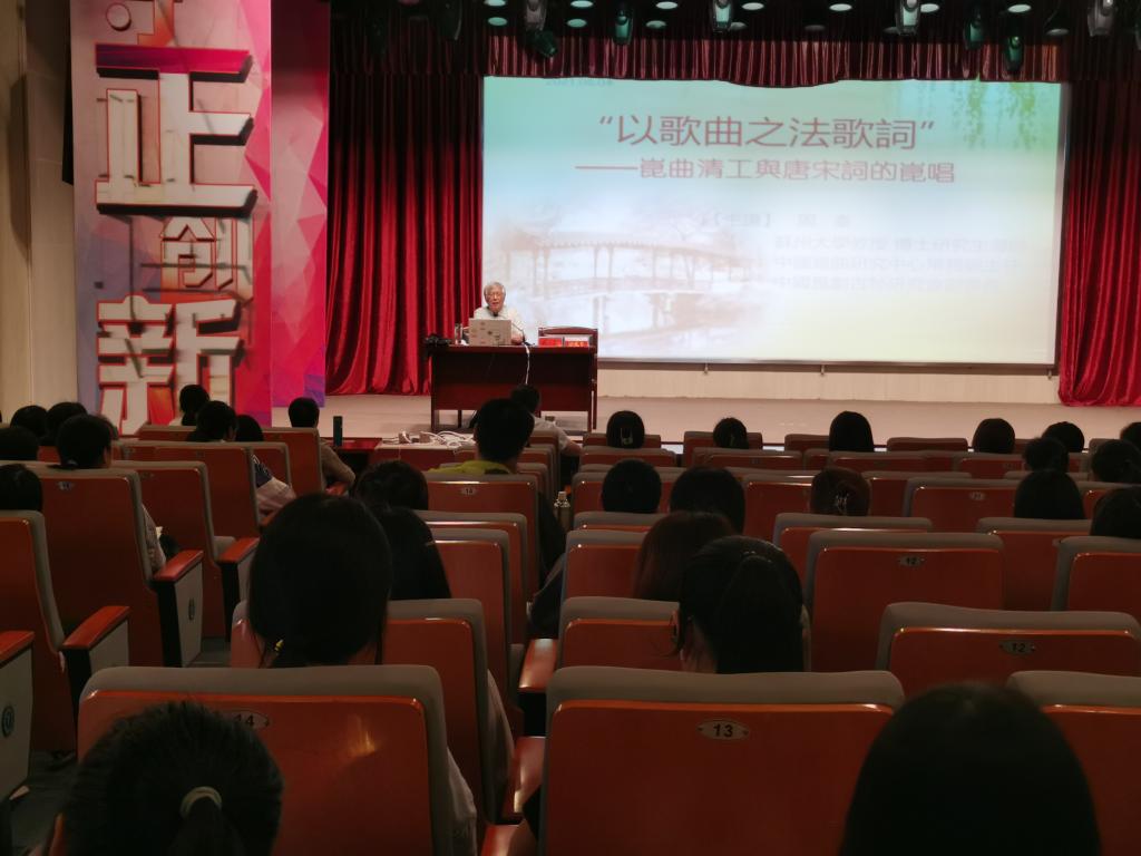 6月4日下午,应WilliamHill中文官网邀请,苏州大学博士研究生导师周秦教授在菱湖校区图书馆报告厅做了题为“‘以歌曲之法歌词’——昆曲清工与唐宋词的昆唱”的讲座。讲座由WilliamHill中文官网副经理汪孔丰教授主持,一百五十多位师生出席此次讲座。