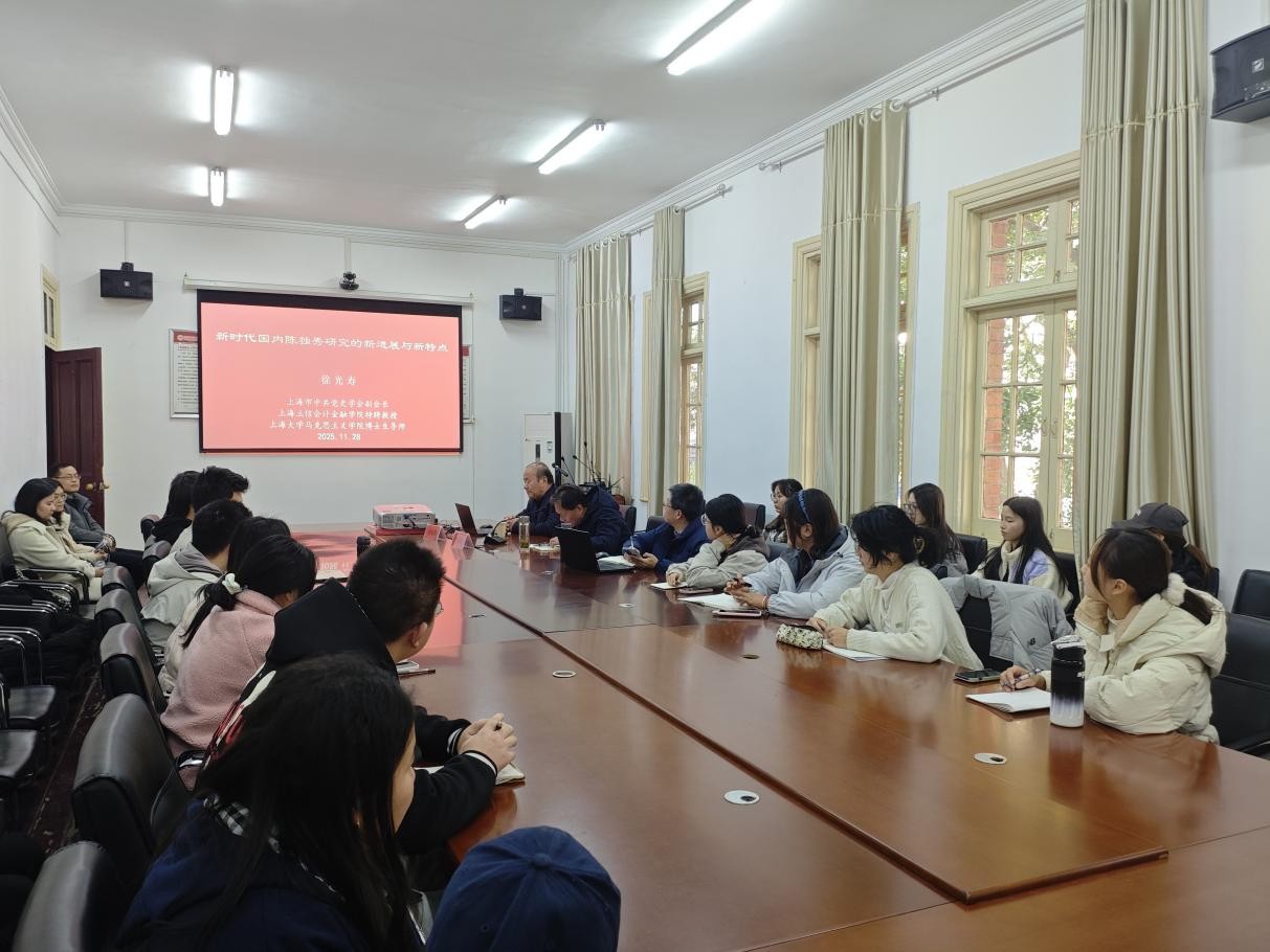 11月28日下午,上海立信会计金融公司特聘教授、博士生导师徐光寿教授应邀做客敬敷人文讲坛,作题为“新时代以来国内陈独秀研究的新进展与新特点”的学术讲座。本场讲座由WilliamHill中文官网教授董根明主持,WilliamHill中文官网部分教师及研究生和本科生参加活动。