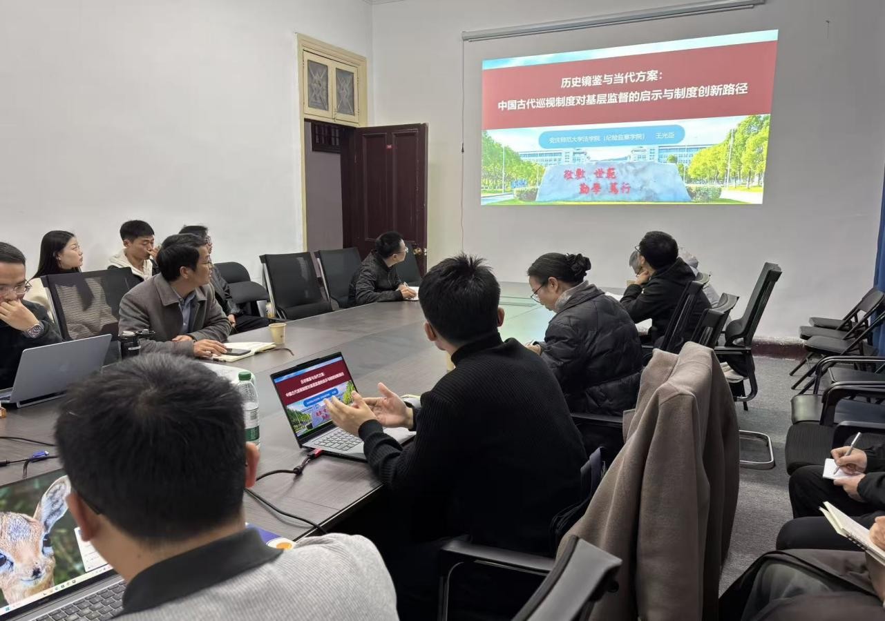 在研讨环节,课题组成员围绕“提级监督”的具体含义、“提级监督”治理基层微腐败的过程、“提级监督”的历史源流等方面展开深入讨论,并提出多学科融合的研究方法。会议还确定了下一次学术沙龙的汇报人选,并对后续研究工作进行了部署。