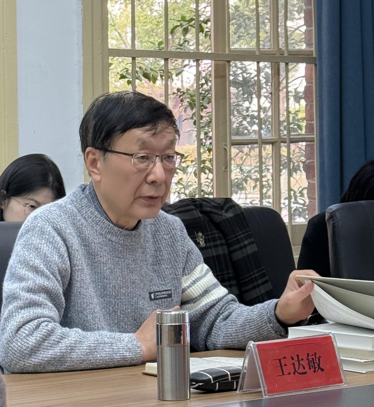 讲座中,王达敏教授围绕自己的三部代表专著《中国文学现代传统的形成》《余华论》和《中国当代人道主义文学思潮论》,分享了自己从事中国现当代文学研究和评论的历程。王教授提出,哲学、思想史和历史等思想资源,是文学研究和文学评论的土壤;研究者要具备才、学、识等理论素养,既要有见识,也要有文采。王教授建议,做现当代文学研究和评论要广泛阅读,多关注当下作家的评论,可以从作家评论的写作入手,但与作家需要保持一定的距离。在交流环节,蔡伟保、陈宗俊、冯慧敏、李忠超等多位老师和研究生纷纷提出自己的感想和问题,王老师一一进行了回应,气氛热烈。