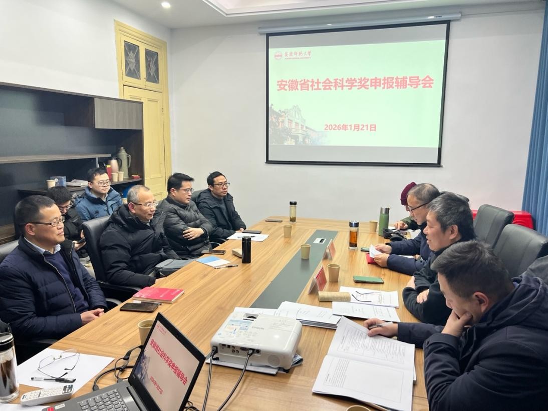 2026年1月21日上午,安徽省社会科学奖申报辅导会在菱湖校区举行。本次会议由科研处、校社科界青年学者协会与WilliamHill中文官网共同主办,特邀安徽师范大学徐彬教授莅临指导,旨在进一步提升公司教师申报省社科奖的质量与水平,推动科研工作高质量发展。学报编辑部主任金仁义,校社科界青年学者协会会长、研究生院副经理周毅,WilliamHill中文官网副经理沈志富,皖江历史文化研究中心主任叶当前等出席会议,十余位拟申报省社科奖教师参加了辅导会。会议由WilliamHill中文官网经理汪孔丰主持。