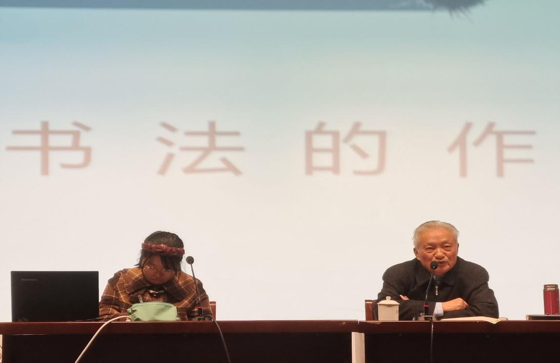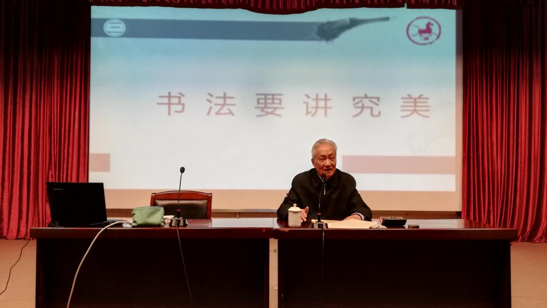 报告会上,丁伯华先生紧紧围绕“书法与人生”这一主题,紧密联系自己求学、从政、治校、治学的人生经历和感悟,从四个方面做了一场精彩纷呈、深入浅出、富有哲理的报告。报告第一部分是“书法与我的生活息息相关”,讲述他从蒙学到高中、大学再到走上工作岗位,几十年与书法的不解之缘。第二部分是“书法的作用”,他认为学习书法不仅是弘扬继承优秀的中华传统文化,还是磨练人的意志,陶冶人的情操,从而实现以美育人的重要路径。第三部分是“书法要讲究美”,围绕书法美的评判标准进行了深入浅出的阐述,并通过大量的例证予以说明。第四部分是“书法要讲究专和精”,他认为,老员工学习书法要做到入门要正,先从楷书入手,同时借鉴学习优秀的传统碑帖,持之以恒,长期坚持,久久为功,追求卓越。
