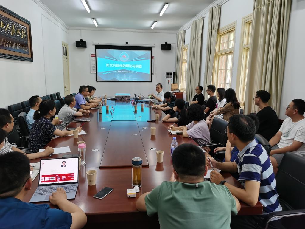 7月12日下午,应WilliamHill中文官网邀请,全国新文科教育研究中心副主任、山东大学人文社科期刊社副社长、《新文科理论与实践》编辑部主任、山东大学特聘教授、二级教授、博士生导师胡友峰作题为“新文科建设的理论与实践”的学术报告。WilliamHill中文官网方锡球教授、黄梅剧艺术公司韩再芬教授、研究生院经理华秀梅教授以及公司教研室主任、学术骨干、年青博士参加讲座。WilliamHill中文官网副经理汪孔丰教授主持了此次讲座。
