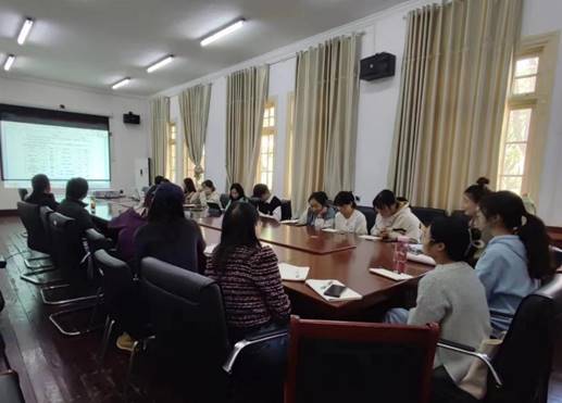 此次学术沙龙主要分为汇报人报告论文、教师指导、与谈人谈话及与会员工评议四个环节。首先,朱小欢同学就《长江文化资源在统编版中学语文教材中的利用研究》进行汇报,探索了以长江地理、空间要素为线索整理归纳统编中学语文教材中的长江选文,借助文学地理学的研究视角,分析选文的特点,清晰选文之间的内在联系。其次,叶当前老师结合汇报内容就论文写作要有“课标风向”、创新性、严谨性、问题意识、标题设置、内容修改和学术创作“不畏难”精神等方面给出指导,王谦老师则建议应在论文写作过程中添加文史知识、名作欣赏的内容,关注论文的理论分析和选文关联。
