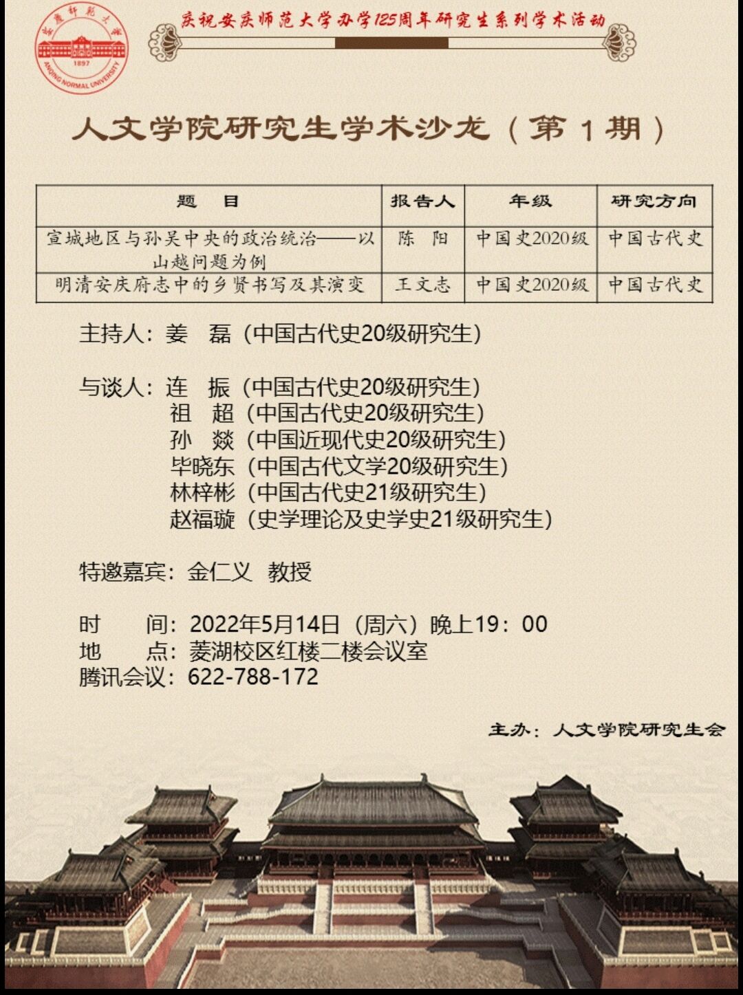 【研究生学术沙龙(1)】宣城地区与孙吴中央的政治统治/明清安庆府志中的乡贤书写及其演变