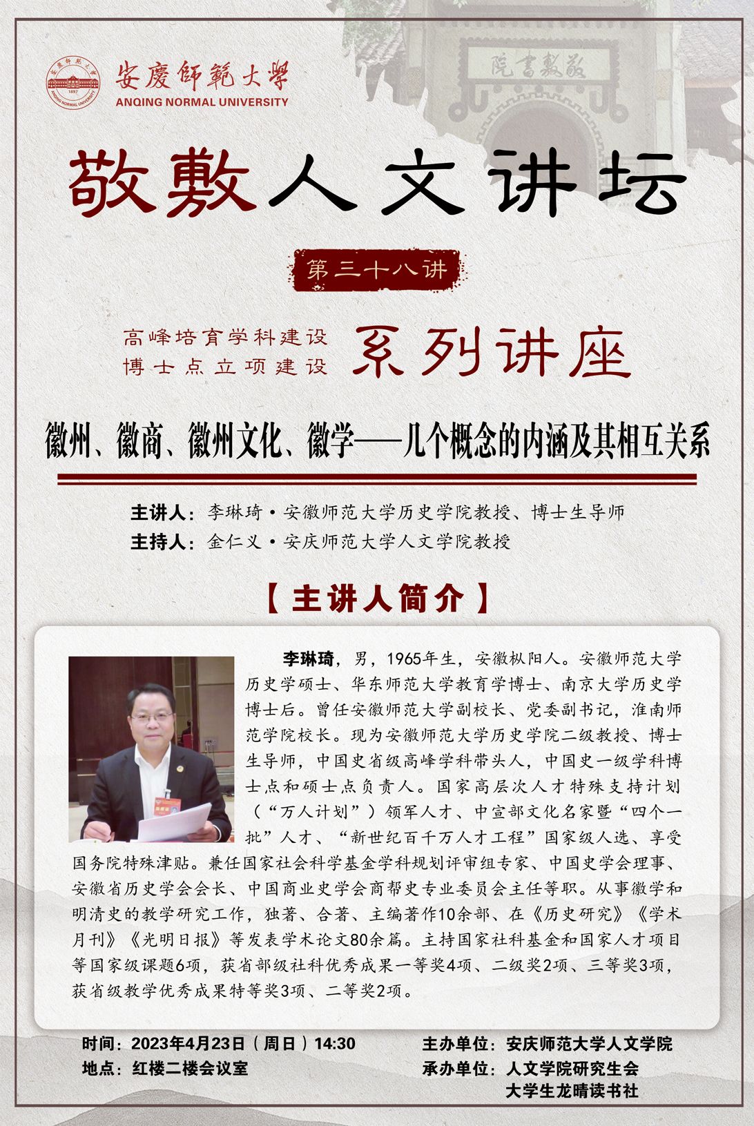 【敬敷人文讲坛(38)】徽州、徽商、徽州文化、徽学——几个概念的内涵及其相互关系