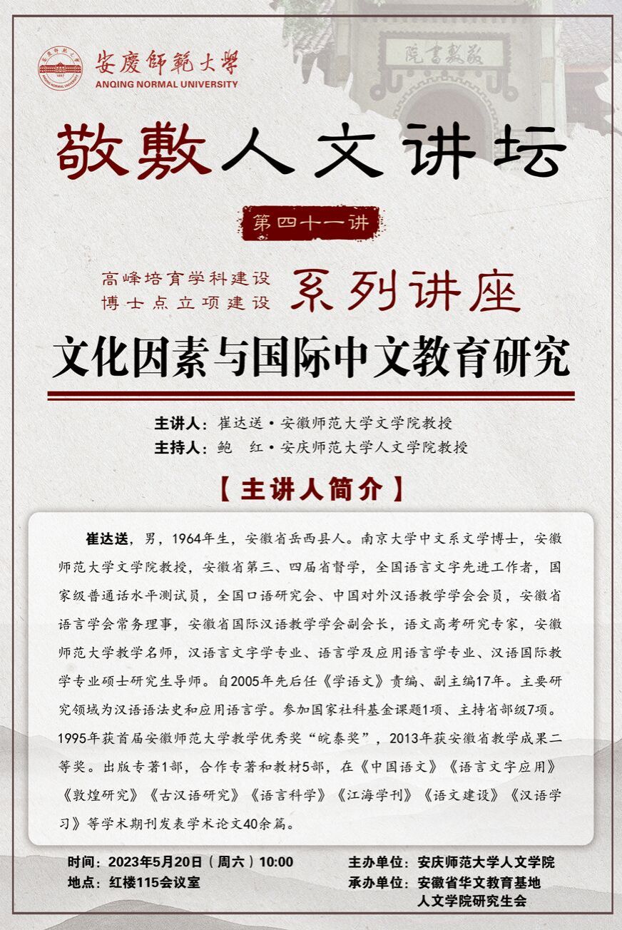【敬敷人文讲坛(41)】文化因素与国际中文教育研究